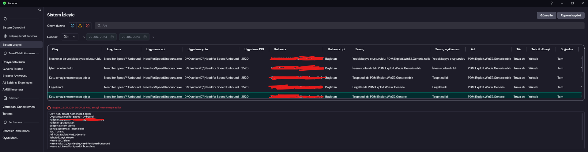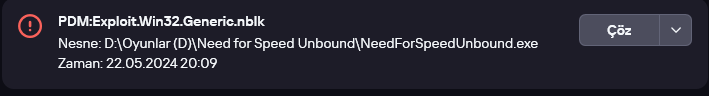 Kaspersky NFS Unbound.exe dosyasında virüs buldu