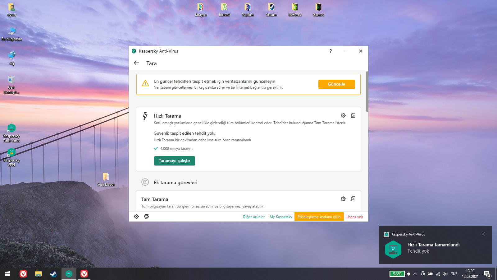 Hocam neden pişmanlık olsun? Bana göre en iyi Anti-Virüs. Hızlı Tarama'da bir şey bulamadı diye neden suçluyorsunuz? Belkide sisteminizde virüs yok?