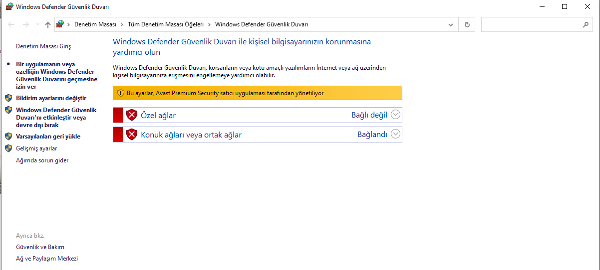 Neden kızgın attın? Bak, Defender'a girince Avast çıkmıyor.