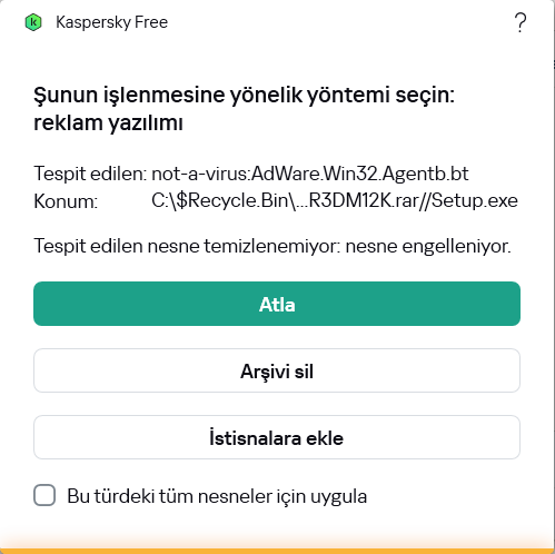 Çözüldü Kaspersky'nin bulduğu reklam yazılımı yerinde yok ve Kaspersky bunu silemiyor
