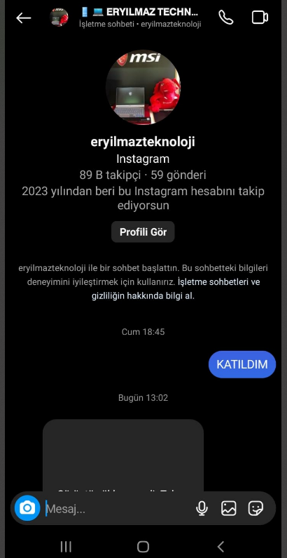 İntegramda çekiliş yapan bir teknoloji sayfası MSI Raider GE78hx 13VH-438 us çekilişini kazandığımı ve gümrük vergisi ödemem gerektiğini söyledi fakat dolandırıcılık olduğu belli. Sizce ne yapmalıyım