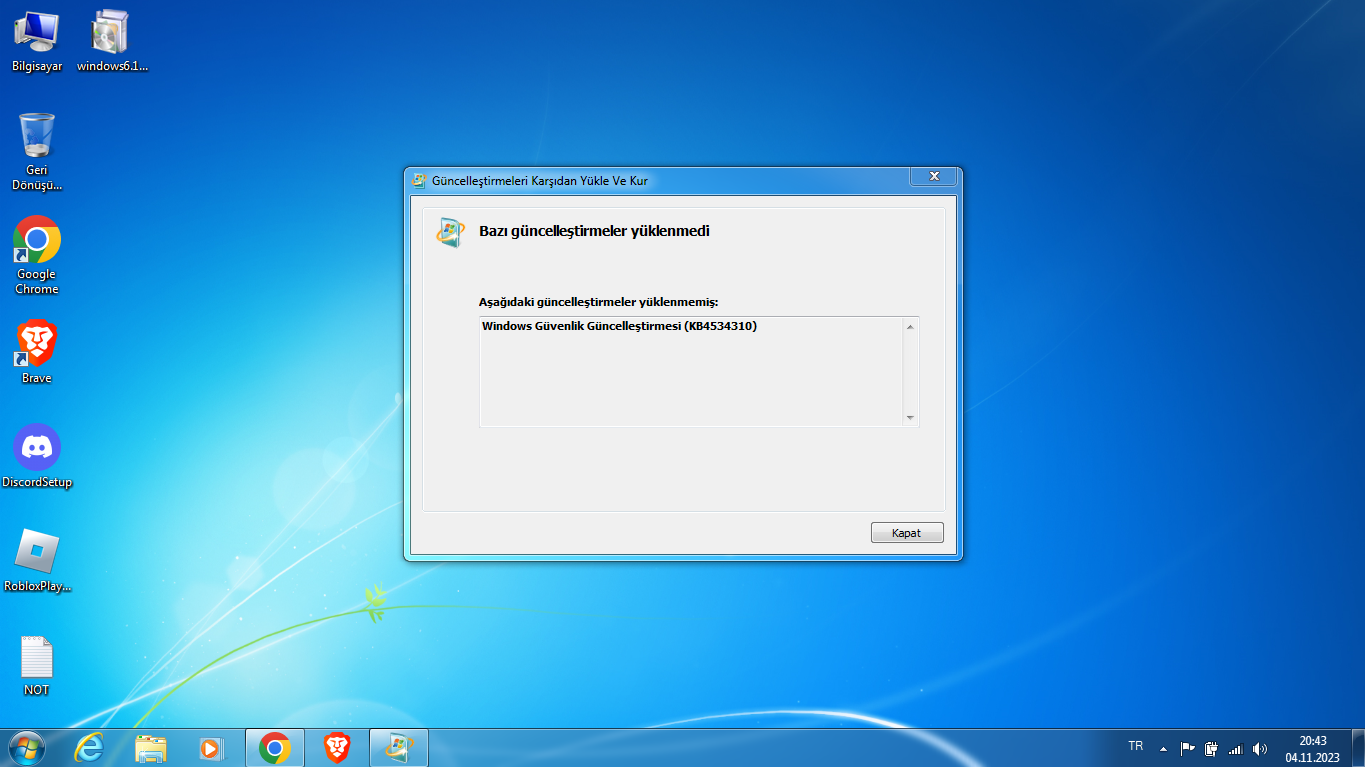 Arkadaşlar bugün Windows 7'ye geçtim Roblox oynamak için KB4534310 güncellemesini yüklemeye çalışıyorum ama yüklenmiyor en sonunda şu hata çıkıyor: