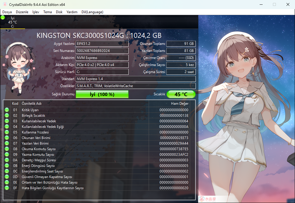 CrystalDiskInfo ile gösterebilir misin SSD'yi.