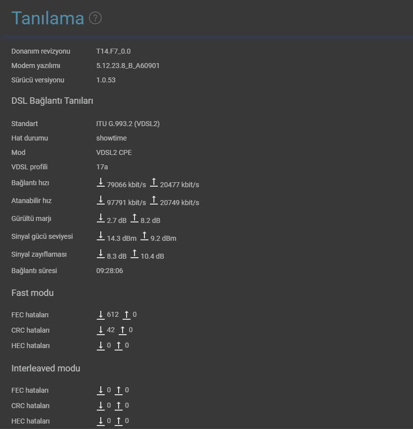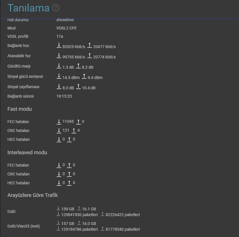 Merhaba, 1-1.5 yıldır internetim ile düzgün değerleri yakalayamadım. Kafaya koyarak alabildiğim tüm hızı (sağlıklı) bir şekilde almak istiyorum. Öncelikle hattım 100 Mbps, kullandığım güncel cihazım Keenetic Extra DSL (yeni versiyon). Hattım standart olarak yüzlük paket ile 8 SNR margin ayarı ile geliyor. Bu da 64-60 civarı bir hız almamı sağlıyor. Keenetic modemlerde SNR ayarı ile oynamaya izin verdiği için belli bir seviyeye düşerek hızımı arttırmayı hedefliyorum. Birçok yerde araştırma sonucu 8 dB altında sorun yaşanıyor deniyor ama bunun SNR margin ile anladığım kadarıyla çok alakası yok. CRC ve fec hatası değerine önem veriliyor; bu hatalar belli bir seviyede kabul ediliyor deniyor. Hatta CRC ve fec olmayan hat bulmak imkansız deniyor. Şu an cihazım 19 saattir 2 dB SNR (2-1.3 dB) değerlerinde kullanım sonucu 110 CRC, 10k fec hatası alıyor. Bu değer şu an sağlıklı mı? Yaklaşık olarak 50 GB veri indirildi. Önceden 3 dB - 4 dB değerlerini denedim, dengeli noktayı arıyorum. 0 ve 1 dB değerinden saniye başı yükseldiği için denemekten vazgeçtim. Zaten 3 dB en azından 10k fec görmedim, CRC aşağı yukarı aynı oluyor. Aşağıda değerleri ekleyeceğim, not olarak düşeyim. Evde aktif yoğun 4 akıllı cihaz kullanılıyor; 2 tanesi oyuncu PC, diğerleri telefon ve tablet. Fiber başvurusu yaptım ama en son gittiğimde 2025'ten bahsediliyor, pek inanasım yok. Bana olabileceğiniz kadar yardımcı olur, hatalarım ve yanlış bilgilerimi düzeltirseniz sevinirim. Son olarak elimden geldiğince altyapı tarafına uğraşıyorum. Fiberin geç geleceğini bildiğimden en azından aşağıda bulunan ankastre kutusunun değişimini talep ettim; oldukça eski ve kararmış duruyor, belki etki eder.
