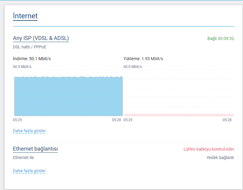 Tam olarak başlıkta bahsettiğim gibi modeme giriş grafiğinde 50Mbit gösteriyor fakat Speedtest yaptığımda 1-3 Mbit arası gidip geliyor. Modem arayüzünden ne yaparsam yapayım düzeltemedim bir türlü. Bu sorunu yaşayıp çözüme kavuşturabilen var mı? Bu arada günde 1 2 saat aralığı yapıyor geri kalan zamanlarda stabil. Modemi kapatıp açıyorum reset atıyorum hiçbir şekilde düzelmiyor. Arızalı olduğunu sanmıyorum daha yeni aldım ve öncesinde böyle bir problem yoktu. TTNET de aynı şeyi söyledi modemin yaptığını, hat değerlerimin iyi olduğunu.