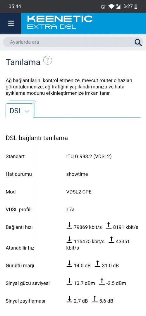 Kararlı sürüme güncelleme yaptın mı? KeeneticOS 3.4.12 olması lazım. Sistem Ayarların da yayınlanmış(Önerileni) seçip güncelle bakalım. Daha sonra Tanılama > yukarıdaki menülerden DSL kısmından tekrar bak.