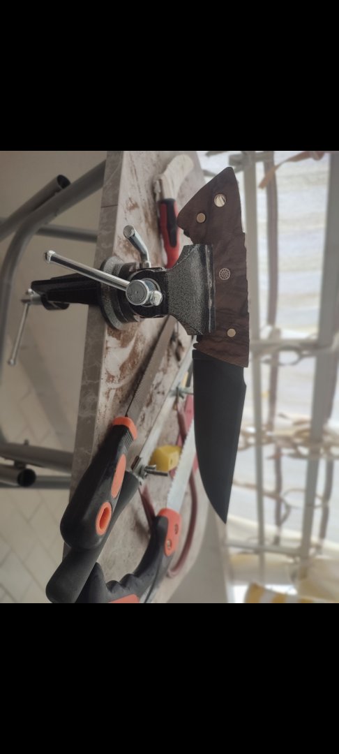 Sap için kök ceviz çelik için sleipner tercih ettim. Bu çeliğin özelliği yarı paslanmaz sınıfının en iyisi olması sayılabilir. Çivi kesebilirsiniz o derece ağzı sağlam ve yamulmuyor. Kampa gidince her türlü işimi görecek. Balta niyetine odun bölerim en basitinden. Sap kısmına da güzel bir IP bağladım mı tamamdır.