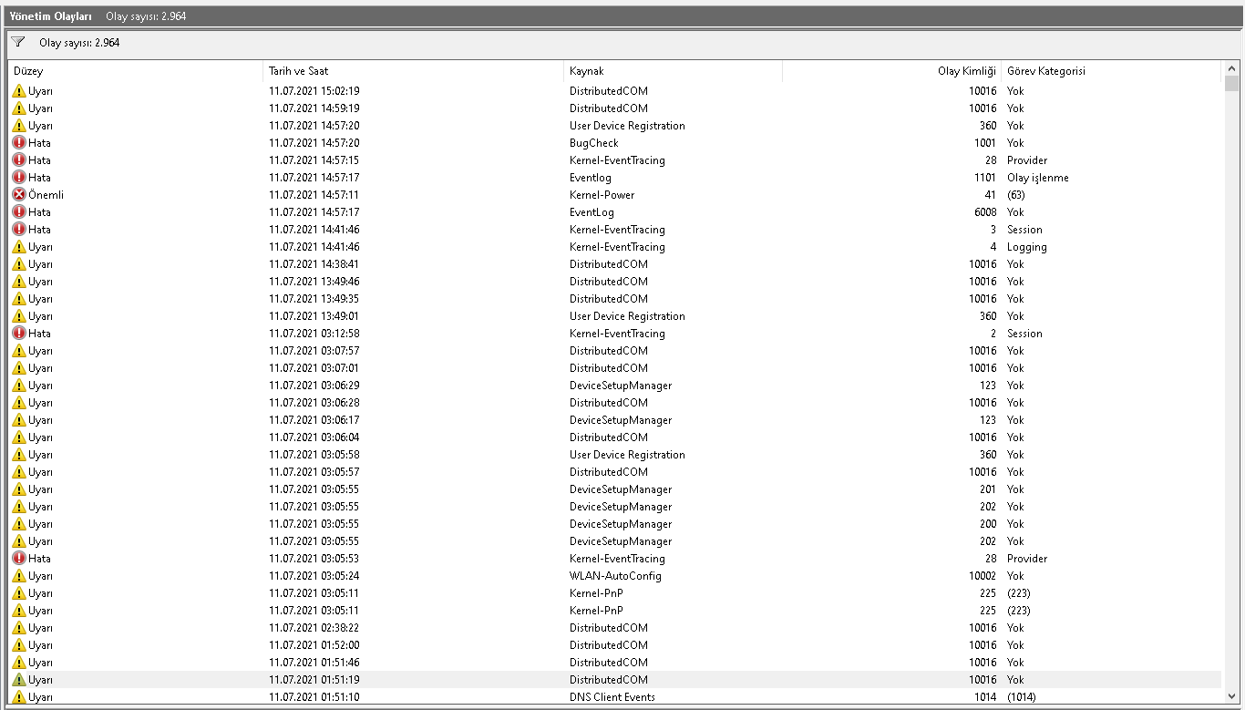 Diğer bir hususta "Olay Yöneticisi" nde bu kadar hata olması normal mi