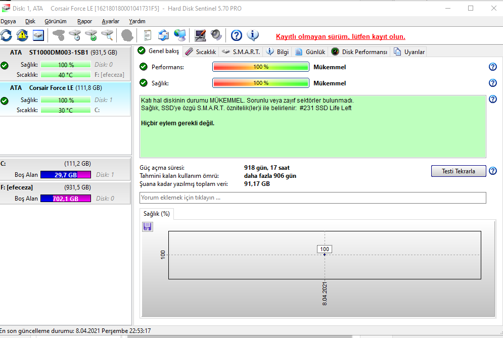 Bu arada sen o SSD'ye naptın? 91TB veri yazmışsın. Günde 50 kere format falan mı attın? Driverlarını güncelle @KojiroHyuga04'nin söylediği gibi. SSD de cidden bir sorun olabilir. Çok fazla veri yazmışsın.