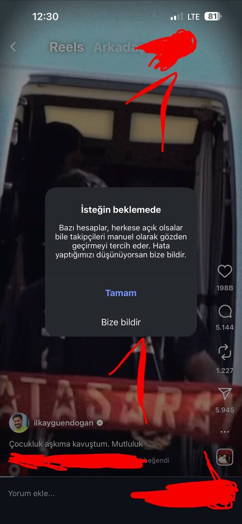 Hiçbir kısıtlama olmamasına rağmen birini takip etmek istediğimde “hata” uyarısı çıkıyor. Tamam'a veya “bize bildir”e bassam da hiçbir şey değişmiyor. Sonrasında profil herkese açık olmasına rağmen “istek gönderildi” yazısı kalıyor ama hiçbir zaman takip gerçekleşmiyor. Bu sorunu nasıl çözebilirim?