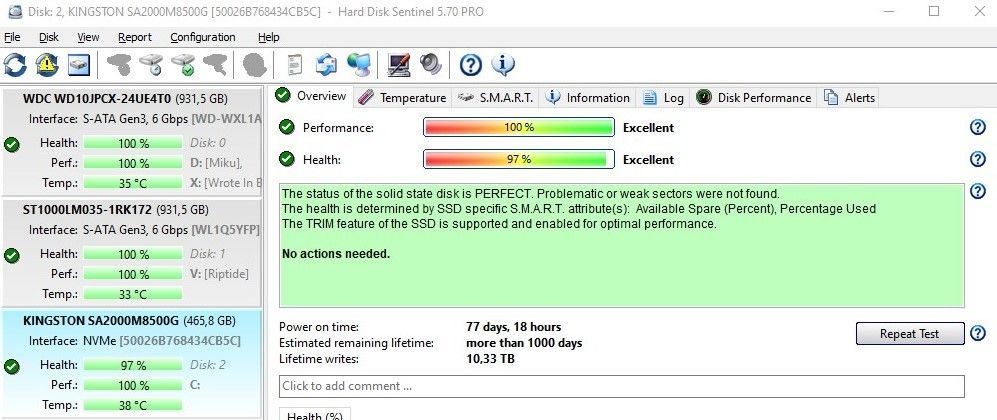 Konuyla alakasız ama A2000 kullanıcısı olarak almanızı kesinlikle tavsiye etmem. 6 Ayda canı %97'ye geriledi. Ben böyle bir ürün almadım hayatımda. Kingston üzdü biraz bizi. Bundan önce Samsung EVO 850 vardı. 4 Yıl kadar kullandım ve sağlık değeri %100'ün altına düşmedi.