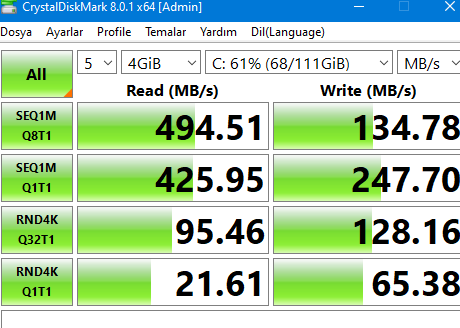 Crystal disk Mark'tan okuma-yazma testi yapıp paylaşın.