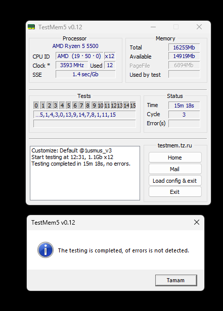 Test bitince herhangi bir bilgi kutusu çıktı mı? Kaç dakika sürdü ve errors kısmında herhangi bir sayı yazdı mı?
