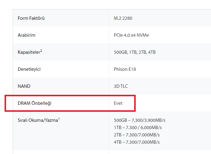 Yalnız cevap verirken dikkat edin çünkü bu Fury modelinden farklı bir model anladığım kadarıyla. Epey'de de DRAM bilgisi göremedim. Soru işareti var. DRAM veya pasif soğutucusu vs. var mı bu modelin bilgisi olan var mı?