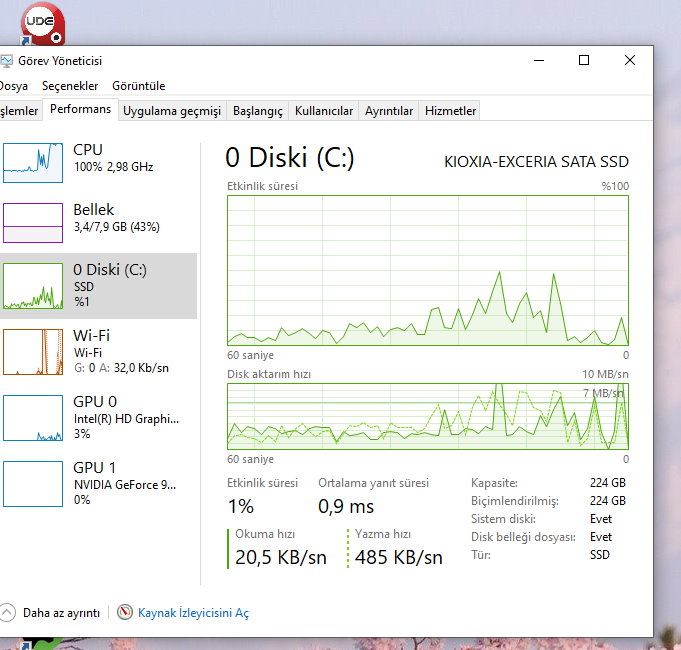 Arkadaşlar, diski temizlerken fark ettim ki çok yavaştı. Sonra şöyle bir baktım, durum bu. Kioxa 240 GB 550mb/sn