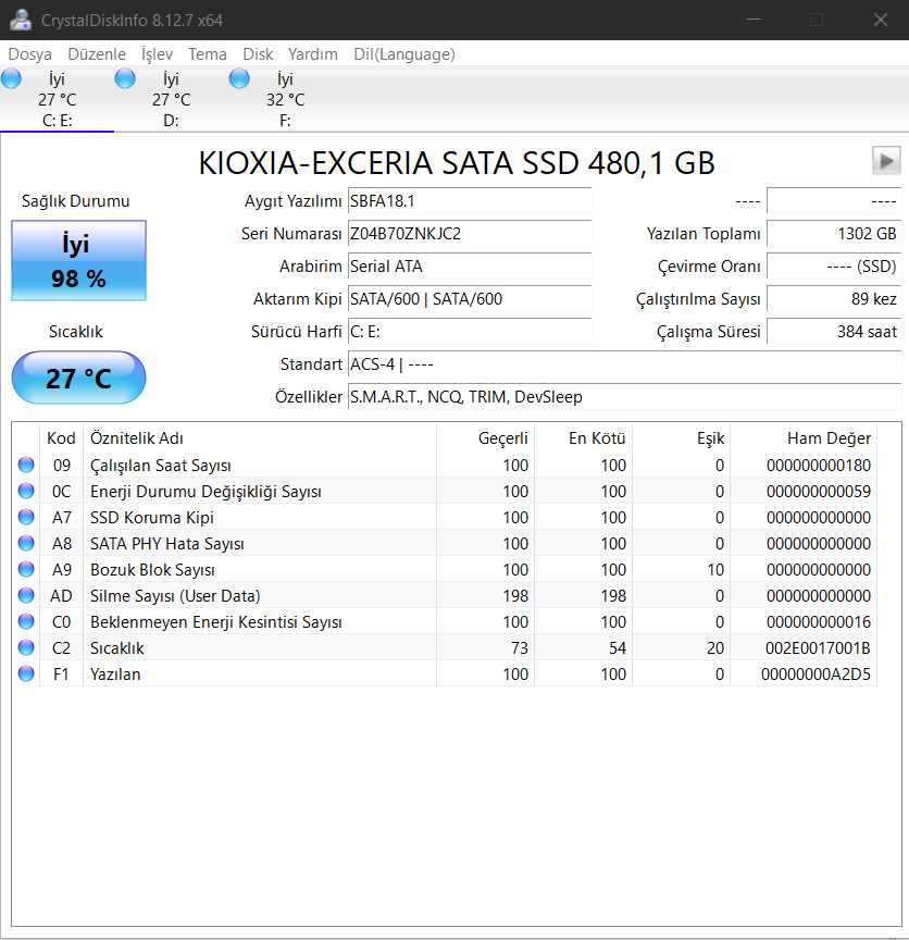 Kioxia Exceria 480GB SATA SSD 2 ay da sağlığı %98'e düştü. Sizce bir sıkıntı yaratır mı ileriki dönemlerde?