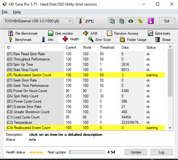 @hEgemen bozulan kesimdeki veriler yedek kesimlere aktarılmış ama uyarı da vermiş. Bu değerler başarılı veya başarısız değerleri de içine alabilir. Uyarı vermesinin sebebi veri kaybı uyarısı olabilir. Ama aksine hiç seek error rate, diskte sorun sayısını gösteren değer, orada sorun yok.