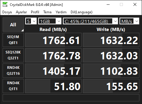 Kioxia Exceria M.2 SSD yazma hızı resimdeki gibi düşük değerler veriyordu.