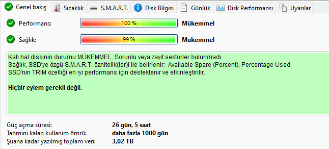26 gündür çalışıyor 3TB veri yazmış %99'a düşüş gerçekleşmiş. Biraz hızlı olmadı mı sizce?