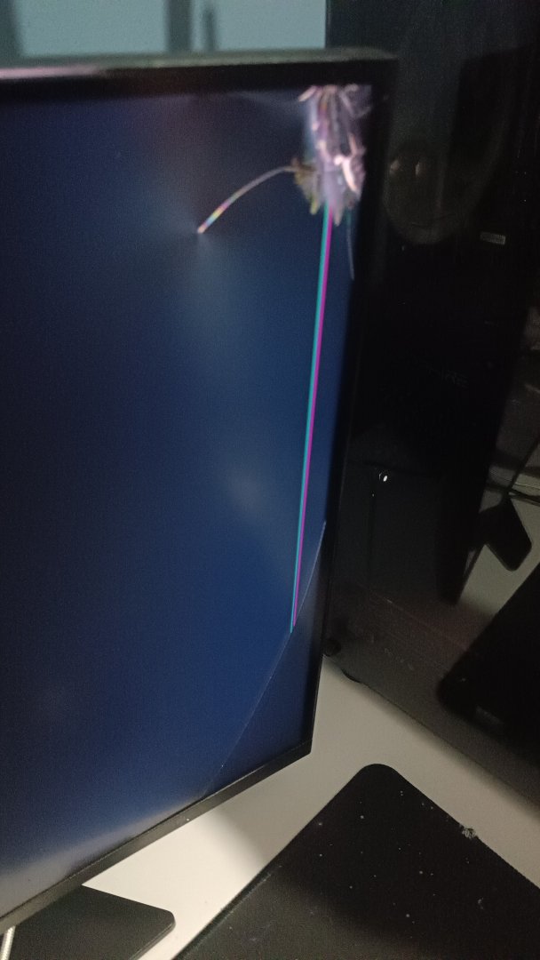 Monitörüm dün sabah çatladı ve paneli, arka aydınlatması falan her şeyi bozuldu. Paneli de zor bulunuyordur bunun zaten ikisini değişmeye kalksam aynı para. Ön cam da çatlamış. Ve sürekli ekrana yeşil, mor, kırmızı çizgiler çıkıyor gidiyor. Ve sayfada aşağı kaydırırken pirpir oluyor bazen.