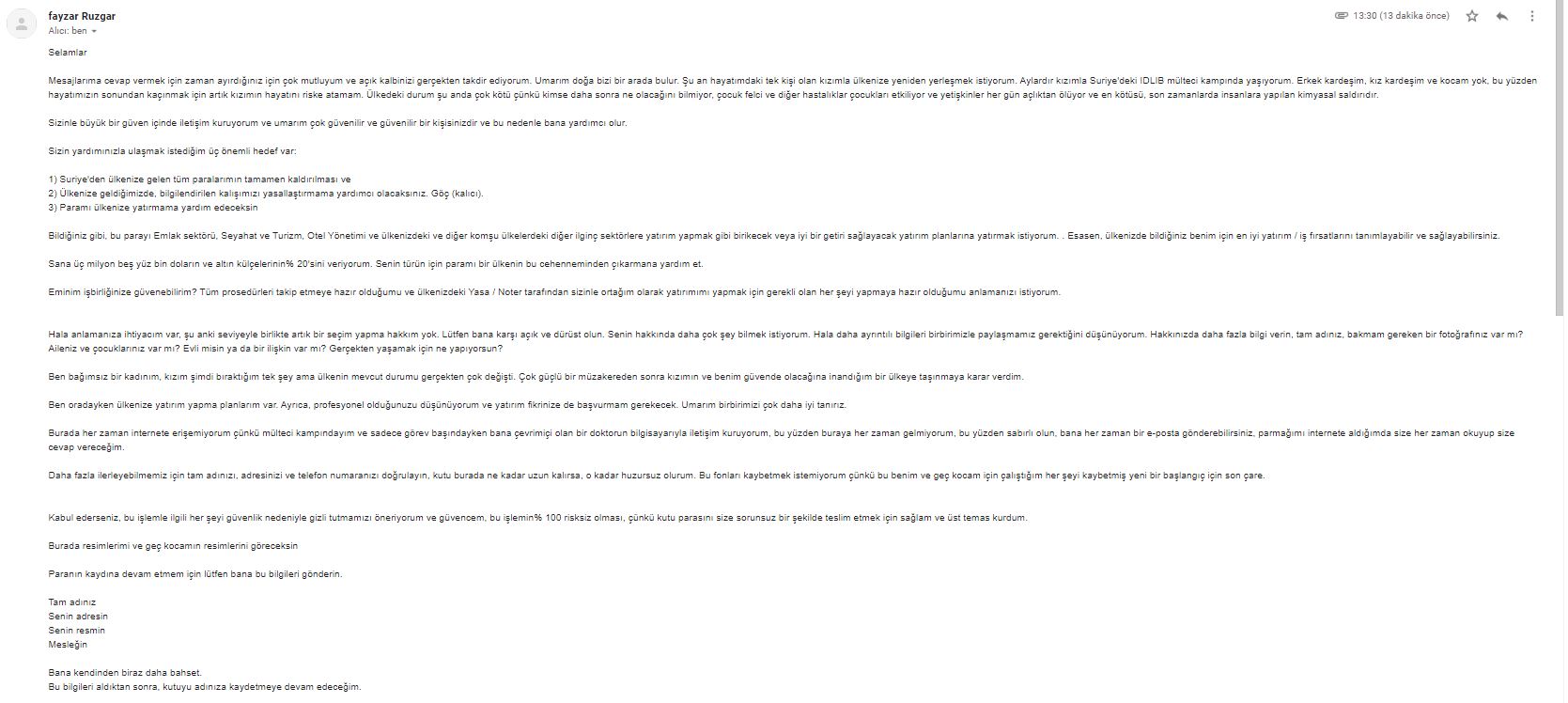 Merhaba arkadaşlar, bugün mail adresime böyle bir mesaj geldi. Siz ne dersiniz bu konu ile ilgili? Bir ilan koymuştum böyle bir mail üzerinden yazmış bir adam. Dolandırıcı mı bilgisi olan var mı?