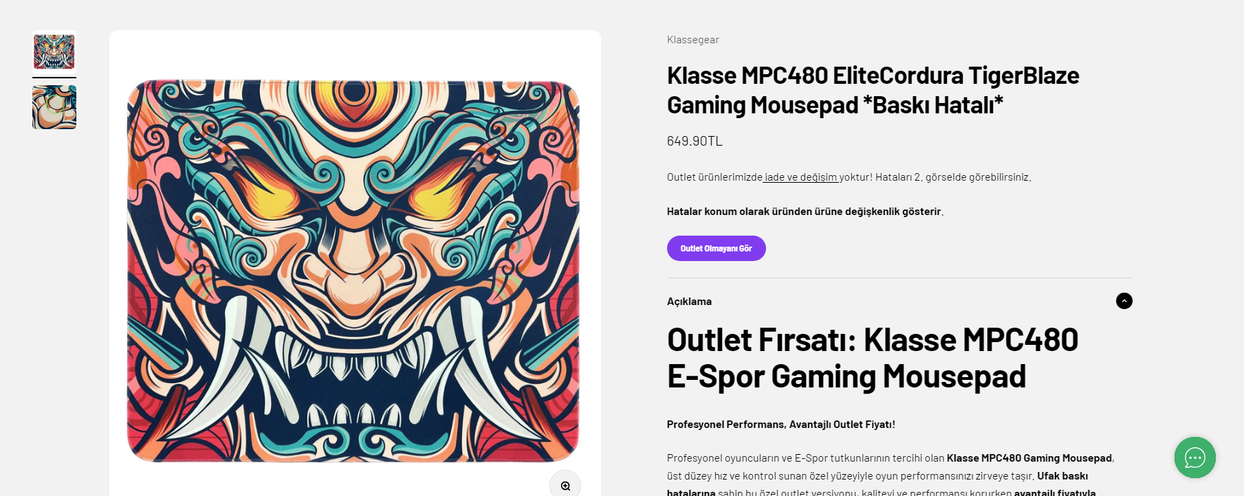 Kendi sitesinde outlet ürün olarak satılıyor bu fotoğraftaki çizgiden dolayı 650 TL alınır mı sizce? Nasıl mouse pad?