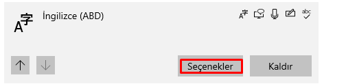 1. Arama yerine dil ayarları yazın ve gelen ekranda kaldırmak istediğiniz dilin seçenekler tuşuna basın.