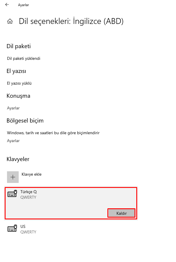 2. Daha sonra klavyelerden kaldırmak istediğinizi kaldıra basın.