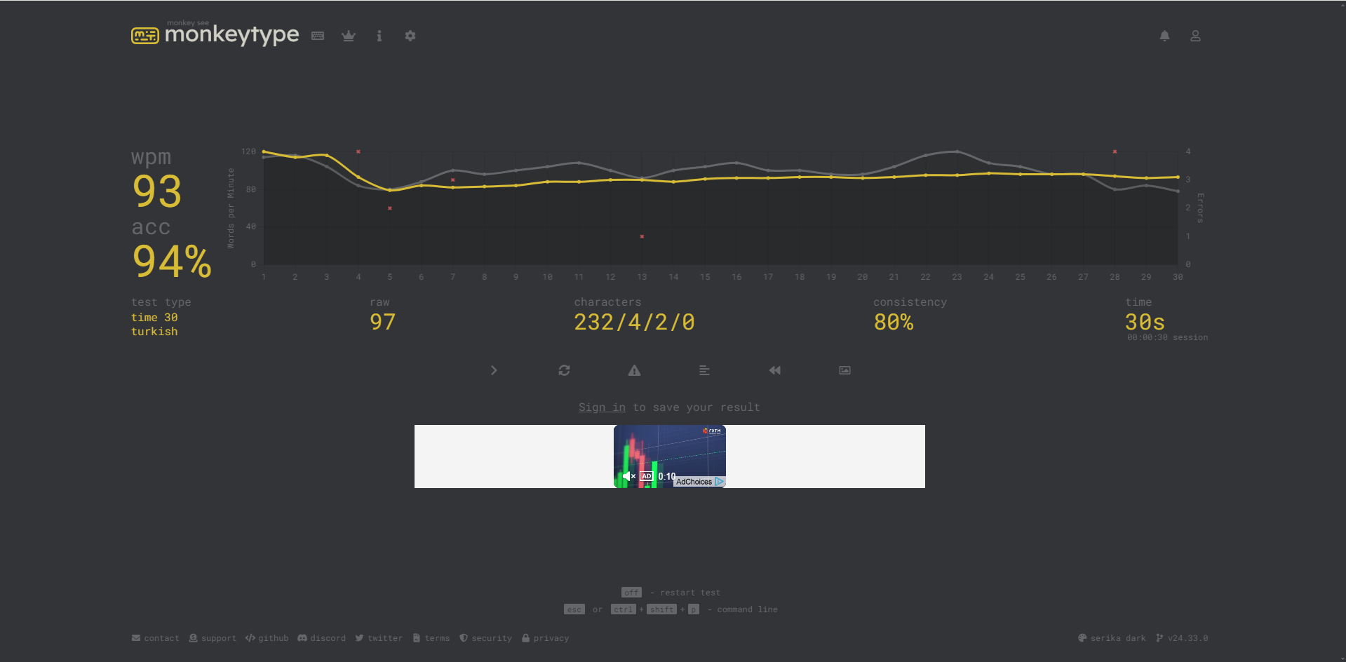 Herkes bu siteden bir klavye hız testi yapsın. Bakalım kaç çıkacak merak ettim. Benim sonuçlarım bunlar. 63 wpm olan sonuç İngilizce. 67 wpm olan sonuç Türkçe.
