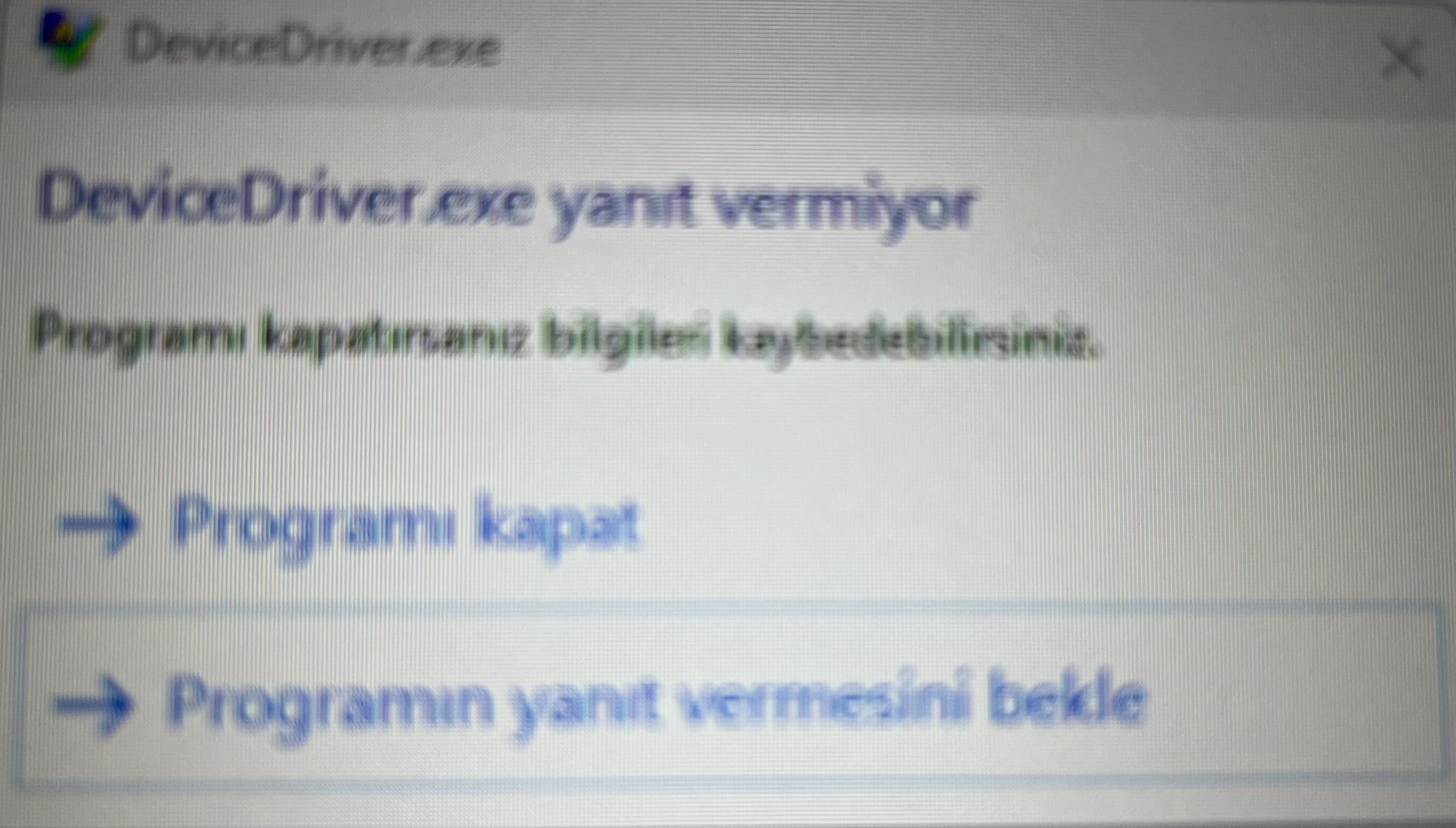 Klavye ve fare yazılımı device driver yanıt vermiyor hatası veriyor