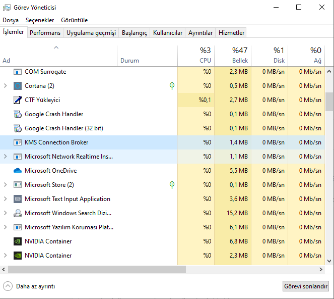 Kaldır dedim fakat görev yöneticisine girdiğimde de bunu gördüm.