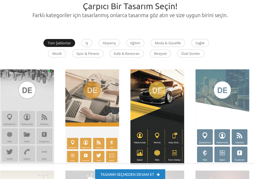Sonrasında bir tasarım seçiyoruz. Tasarım seçmek istemiyorsanız "tasarım seçmeden devam et" diyebilirsiniz.