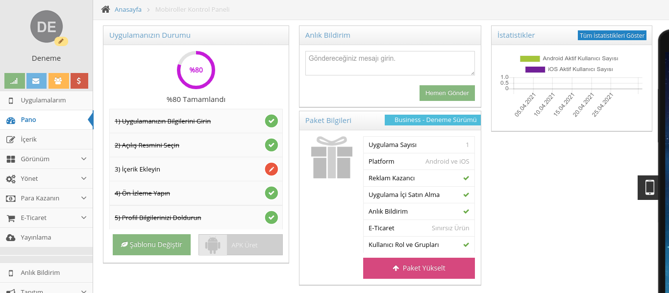 Rehber Kod kullanmadan MobiRoller ile mobil uygulama yapma