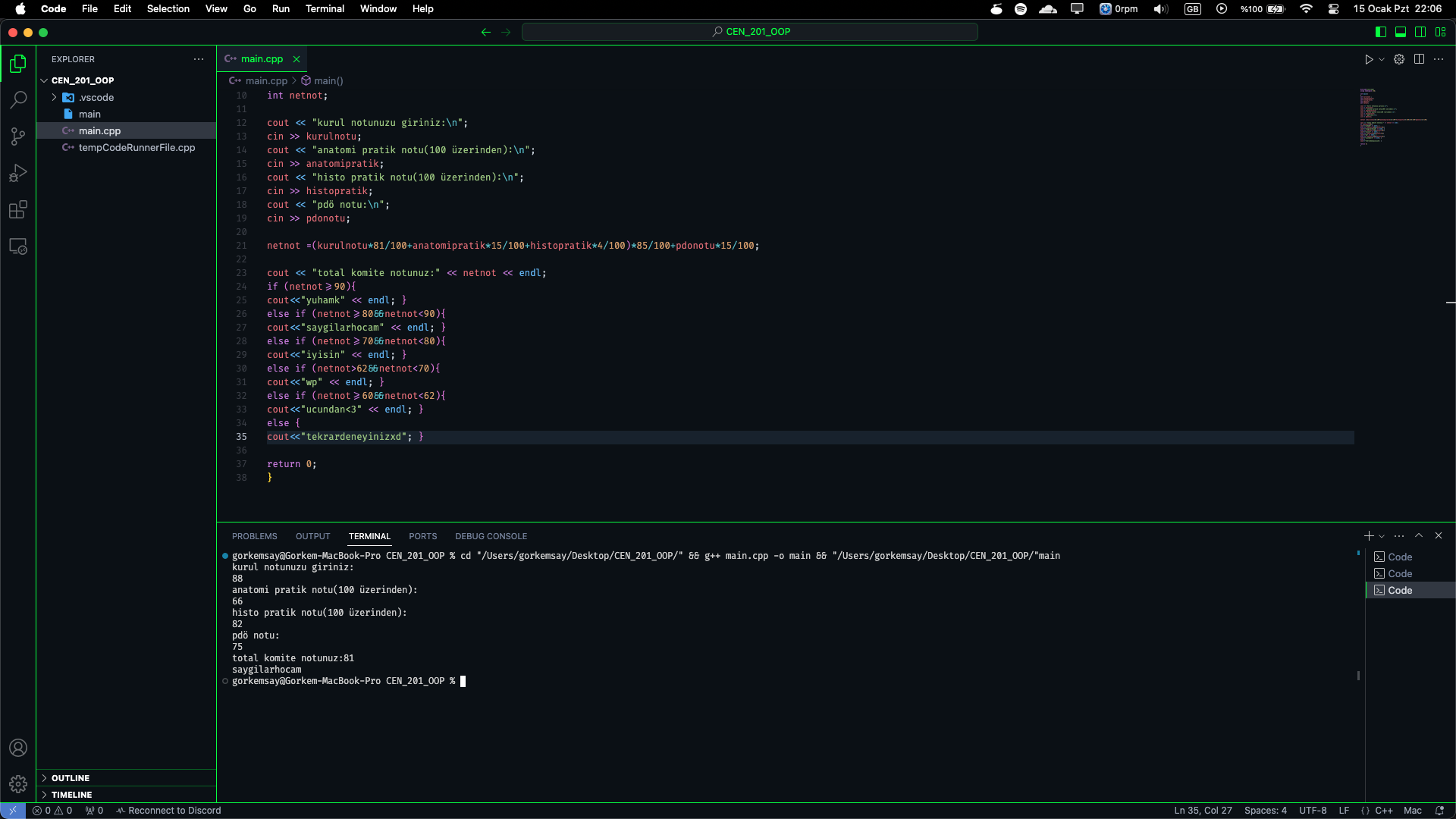 cout << "Toplam komite notunuz: " << netnot << endl;