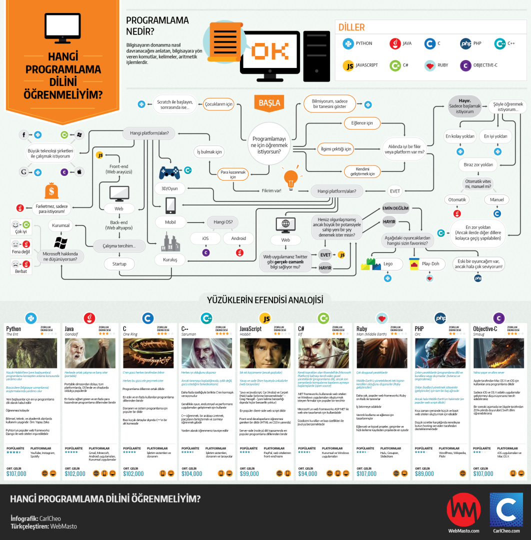 Hocam herkes farklı şeyler söyleyecek ve kafanız karışacaktır. O yüzden şuna bir bakabilirsiniz. Gerçi tüm programlama dillerini kapsamıyor (özellikle dediğiniz web olayı için html'i) ama yine de yol gösterebilir.