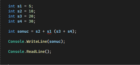 Merhaba. Bu koddaki hata nedir önce S3 ile S4'ü toplatmak ardından S2 ile s1'i toplatıp sonucu ekrana yazdırmasını istiyorum.