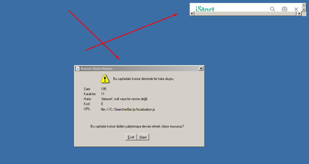 iStart'ı silin.Merhaba, her bilgisayarı açtığımda böyle bir hata alıyorum ve bunu kapatıyorum da bu hatanın çözümünü bilen var mı? Veya yardımcı olacak şimdiden teşekkürler.