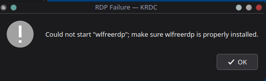 Krdc ile Kubuntu'yu baştan kurmadan önce gidebiliyordum fakat krdc şu anda ekteki hatayı vermekte.