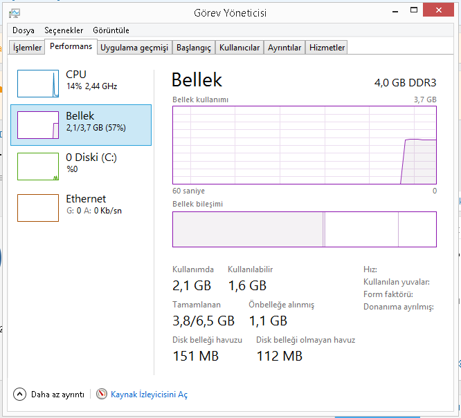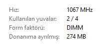 Kullanılabilir RAM miktarı düşük gözüküyor