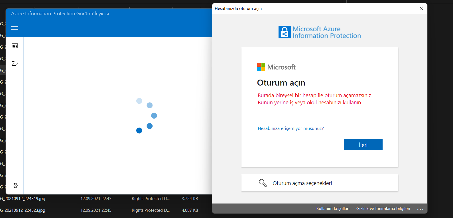 Bir önceki konumda 20 Gb verimin çöp olmak üzere olduğunu söylemiştim. Araştırma yaptım biraz ve "Azure Information Protection Viewer" diye bir programla dosyalarımı görüntüleyebildiğimi öğrendim. Sorun şu ki programa girdiğimde Microsoft benden kurum E-Postası istiyor. Bu kurum E-Postasını nasıl oluşturabilirim?