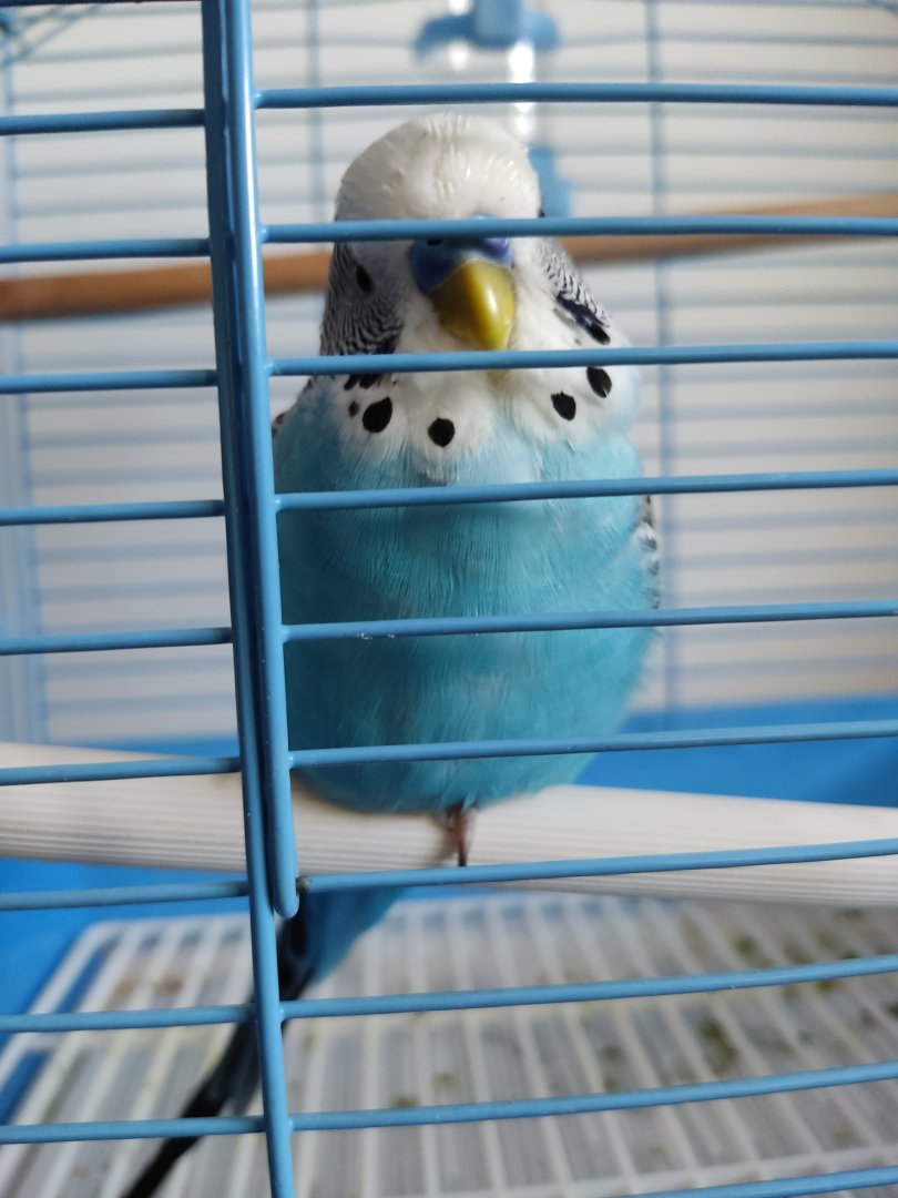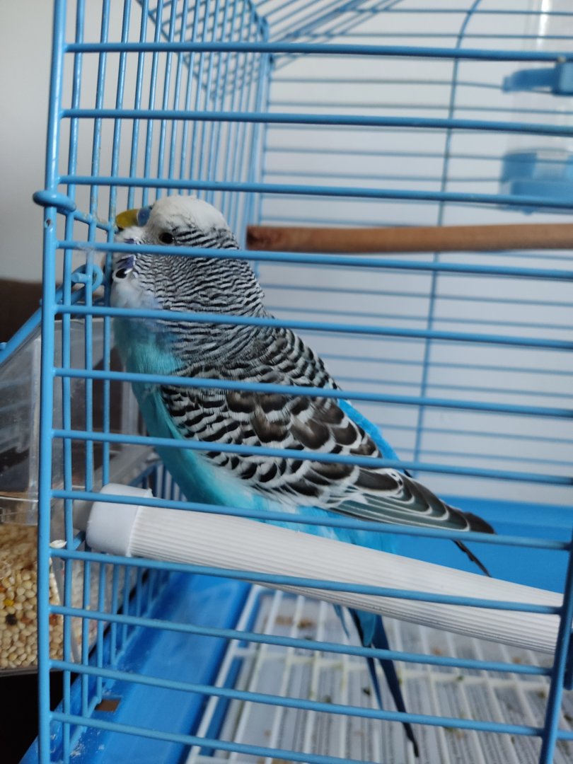 Sonunda şu anda yem yiyor çok korkmuştum yem yemek istemiyor diye... Ötüyor ve çıkmak için bağırıyor, bir ayağını kullanamamasına rağmen çıkmak için kafeste bir o yana bir bu yana dönüyor.