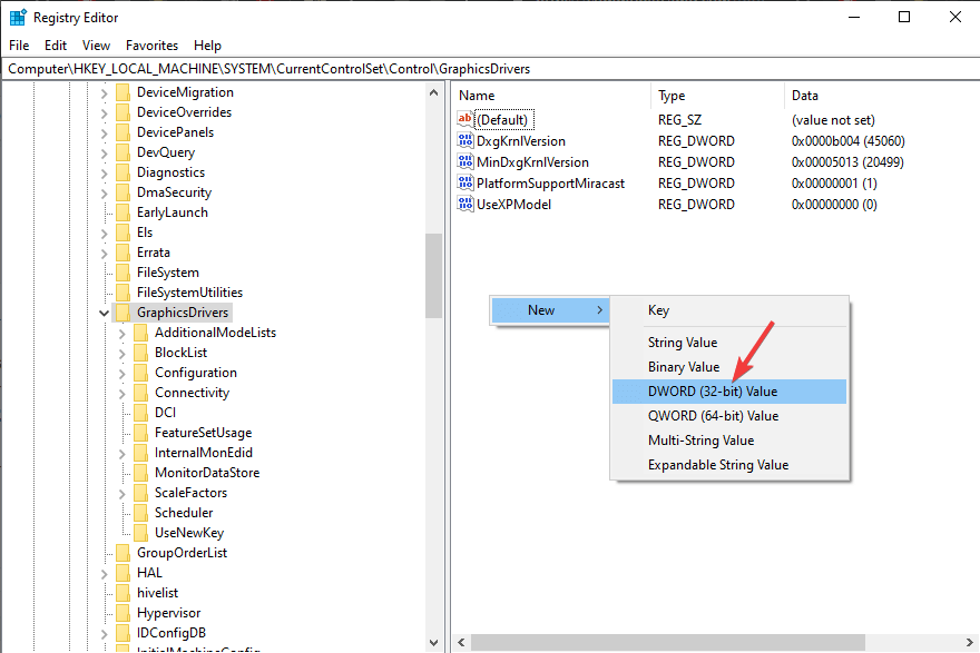 HKEY_LOCAL_MACHINE\System\CurrentControlSet\Control\GraphicsDrivers