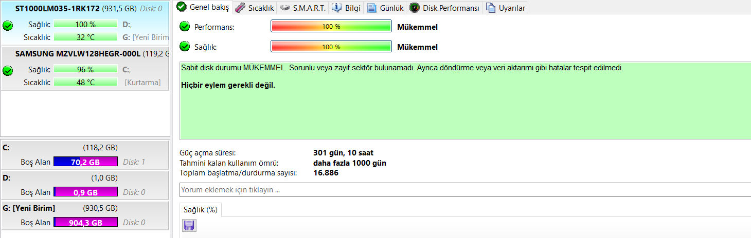 hocam dediğiniz uygulamadan bir şey anlamadım bildiğim bir programdan baktım ve durum böyle %96 sağlık cihaz 4 senelik sıcaklıkta 48.