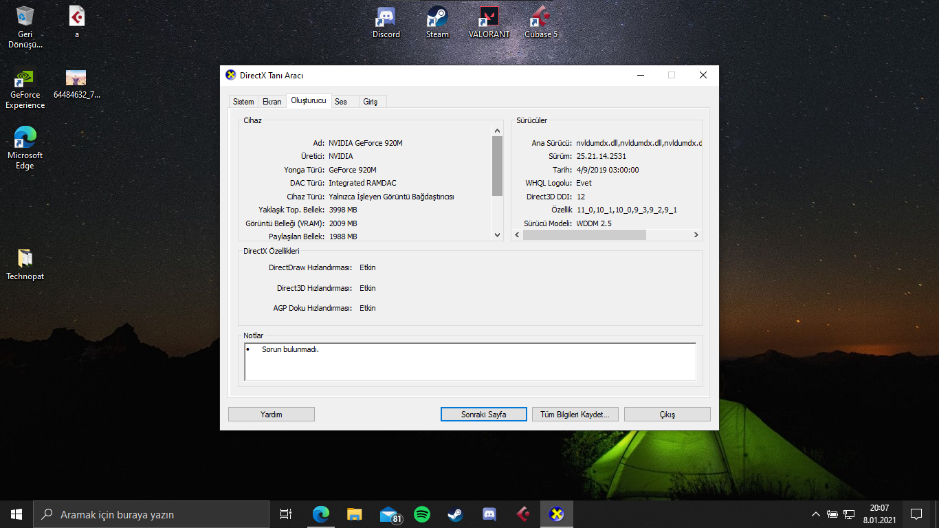Arkadaşlar merhaba. 3 yıl önce laptopu aldım ASUS X541 uj GO 453. Laptop FreeDOS. İşletim sistemi km spico adlı program üzerinden kurulu. Özellikleri resim olarak bırakıyorum. PC'de yüklü olan uygulamalar masaüstümde gördüğünüz kadar Valorant oynarken sürekli ana menüde oynayan varsa bilir. Karakter seçimi gibi yerlerde donma yaşıyorum. Sadece oyunlarda değil PC normal kullanımında da sürekli çok yavaş uygulama açarken oyun açarken sürekli yavaş hata veriyor. Donuyor, artık bıktım. Bir yardımcı olun. PC'nin hafızası dolu desem değil zaten. Oyunlarda Alt+Tab bile yapamıyorum masaüstüne dönmesi 1 dakika bazen hiç hata veriyor başarabilse bile geri açamıyorum alta aldığım uygulamayı. İçini geçen gün temizledim fanlar falan da temiz. Yardım ve görüşlerinizi ve çözümlerinizi bekliyorum. Şimdiden Teşekkürler.