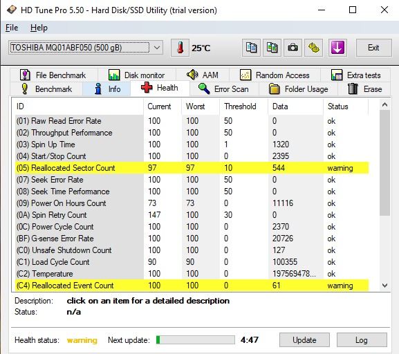 Selamlar öncelikle, 5 yıldır kullandığım laptopun harddisk sağlığına baktım ve bunları gördüm, bilgisayar cok ağır çalışıyor hep disk kullanımı yüzde ve ne yapsam çözemedim, yardımcı olabilir misiniz acaba? Harddisk bozuk ise nasıl yeni bir harddisk takarım? Teşekkürler.