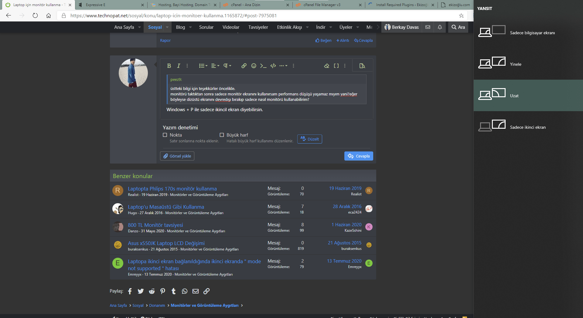 Windows + P ile sadece ikincil ekran diyebilirsin. Windows + P ile yansıtma seçeneklerini ayarlayabilirsin.üstteki bilgi için teşekkürler öncelikle.