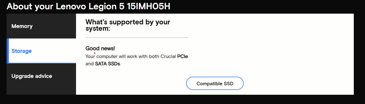 Merhaba, laptop için SSD almayı düşünüyordum ama çok fazla bir bilgim yok. Laptop modelim Lenovo Legion 5 15ımh05h.