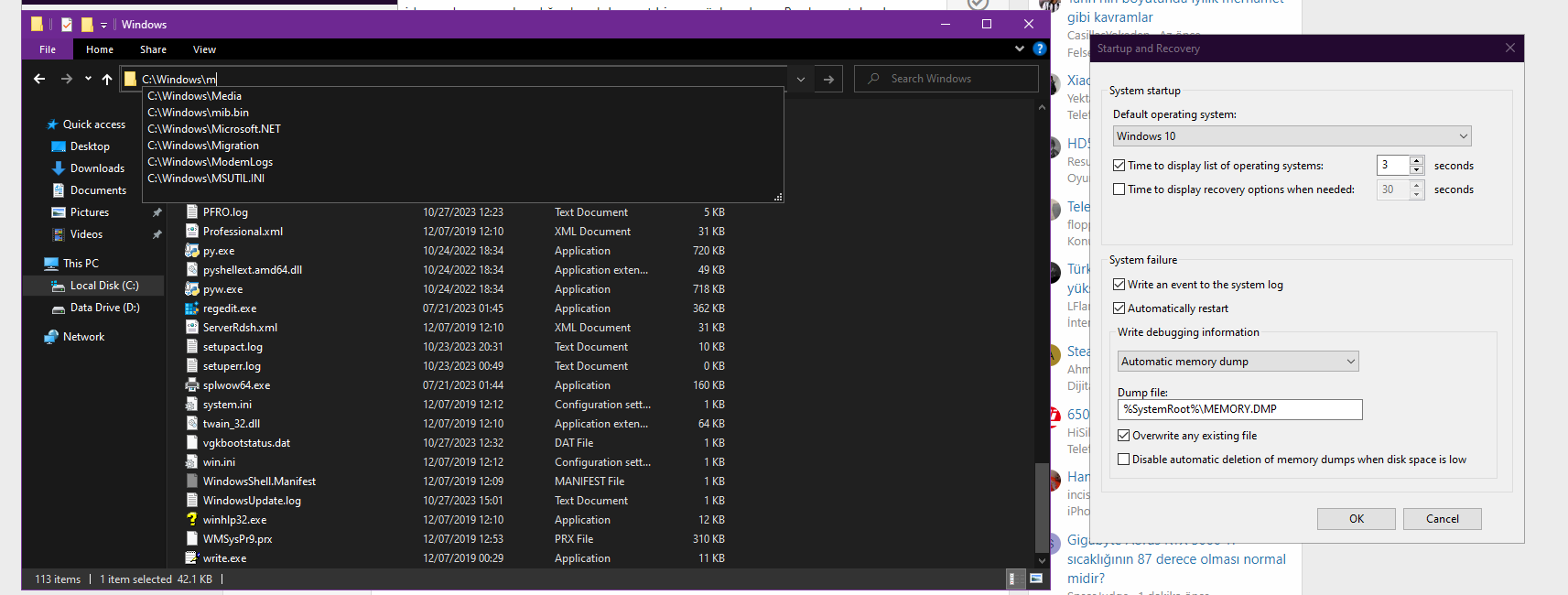 Minidump dosyasının olmadığına dair bir fotoğraf çektim.