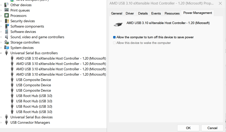 3 - USB aygıtlarına teker teker bakın. Güç yönetimi kısmından ilk seçeneğin seçili olduğundan emin olun.