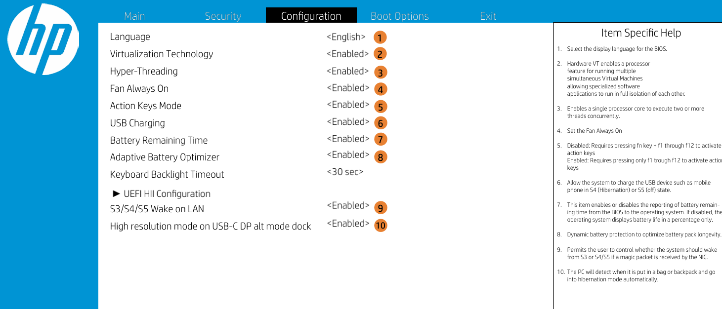 (Varsa battery remaining time, Fast boot, suspend to RAM, CPU C stateleri ve Power saving modlarını kapatınız.